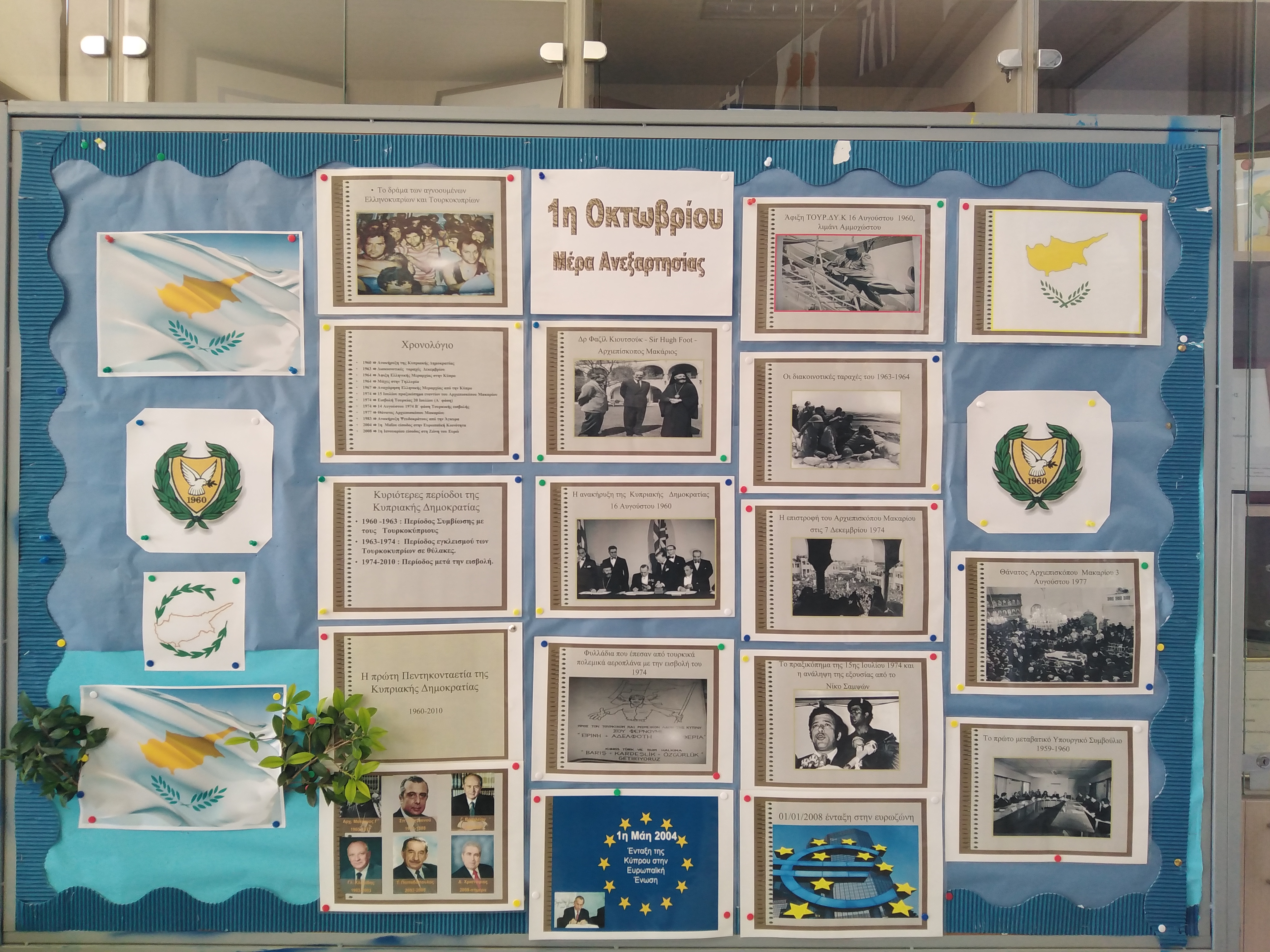 Στο σχολείο μας πραγματοποιήθηκε φέτος ενδοτμηματική γιορτή αφιερωμένη στην 1η Οκτωβρίου 1960, ημερομηνία ορόσημο για την ανεξαρτησία της Κύπρου. Μέσα από αφηγήσεις ιστορικών γεγονότων και παρουσιάσεις, αναδείχθηκαν τα σημαντικότερα κεφάλαια του αγώνα για ελευθερία και υπογραμμίστηκε για ακόμη μια φορά η σημασία της ενότητας και της ειρήνης. Η γιορτή διανθίστηκε με τραγούδια και ποιήματα, που ζωντάνεψαν την εποχή και μετέφεραν το μήνυμα της αυτοδιάθεσης και της εθνικής αξιοπρέπειας. Η εκδήλωση υπενθύμισε σε όλους πως η ελευθερία και η ανεξαρτησία είναι αξίες που πρέπει πάντα να προστατεύουμε και να τιμούμε.